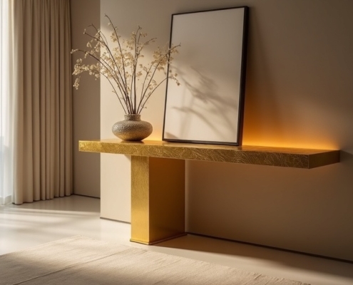 Il processo prevede una fase strutturata di preparazione del supporto, stuccatura, carteggiatura e applicazione del fondo, seguita dalla posa della foglia e dalla successiva protezione con vernici specifiche, in funzione dell’effetto finale richiesto (lucido, anticato, patinato). È possibile modulare l’intensità della brillantezza e il grado di invecchiamento, integrando la doratura in progetti classici, contemporanei o di restauro conservativo.