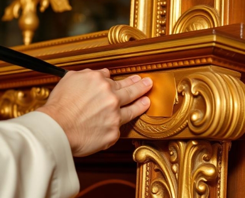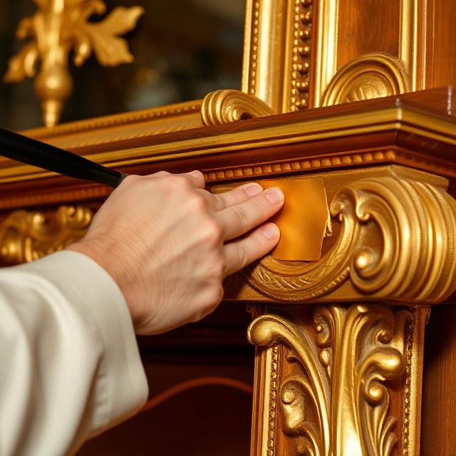 La doratura rappresenta una lavorazione ad alto valore estetico, finalizzata a conferire pregio, luminosità e riconoscibilità a elementi d’arredo, cornici, boiserie e manufatti decorativi. Interveniamo con tecniche tradizionali e contemporanee, applicando foglia oro, argento o similari su superfici opportunamente preparate, per garantire adesione, uniformità e resa visiva di alto livello.